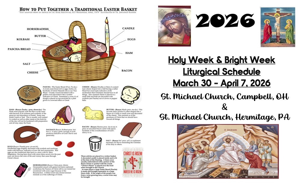 SUNDAY DIVINE LITURGIES: Saturdays 6:00 p.m.; Sundays 11:00 a.m.; Holydays at 6:00 p.m.