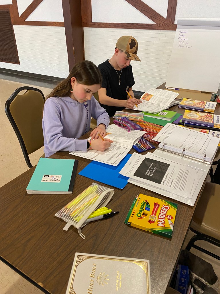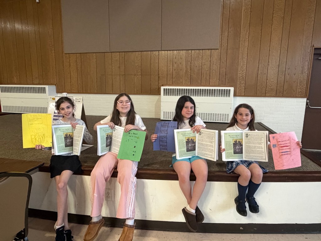 The 5th-7th graders completed their unit review about the Fall of Creation with a trivia game and snack prizes. The students are learning that though evil in the world does exist, we can choose to stay close to God by praying and choosing to do right when we are tempted.